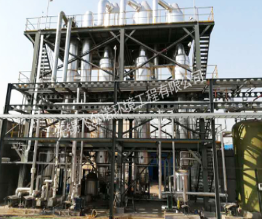 一效、二效、三效強制循環蒸發器之間通過平衡管相通,在負壓的作用下,高含鹽廢水由一效向二效、三效依次流動,廢水不斷地被蒸發,廢水中鹽的濃度越來越高,當廢水中的鹽分大于飽和狀態時,水中鹽分就會不斷地析出,進入蒸發結晶室的下部的集鹽室。